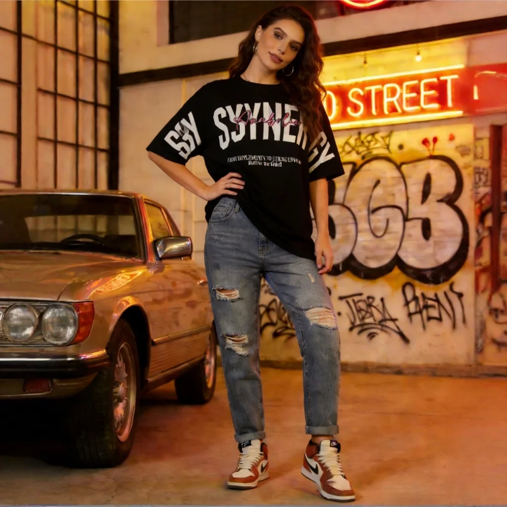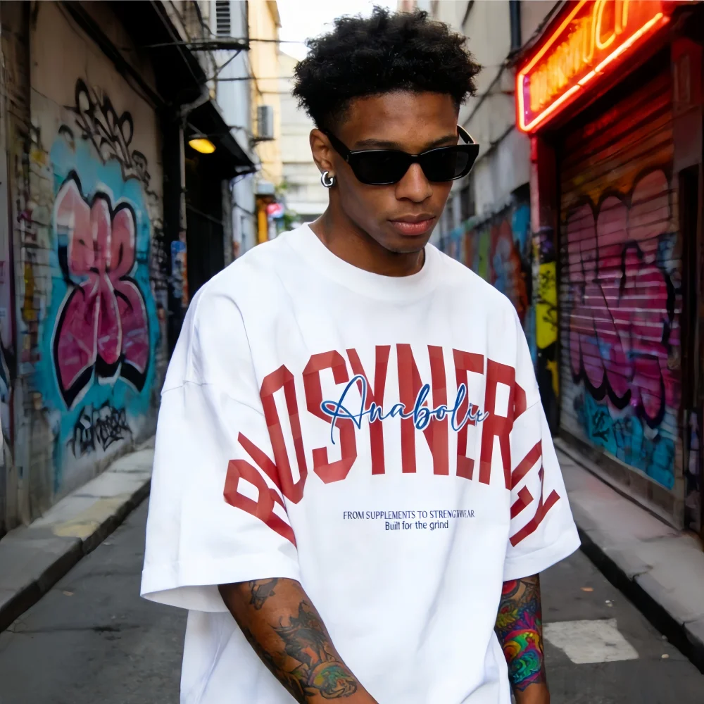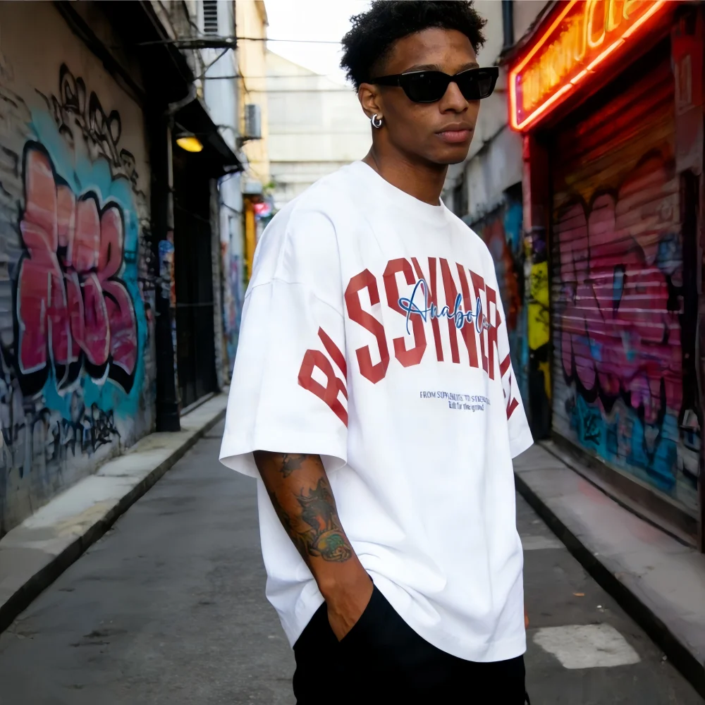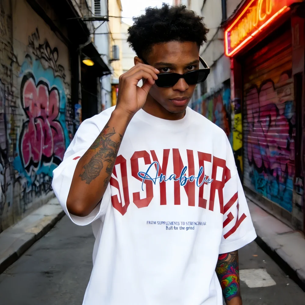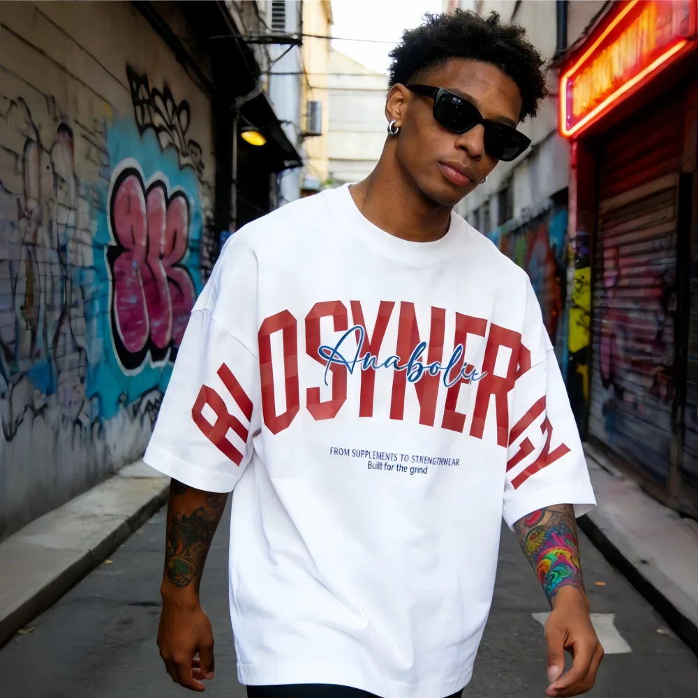 Panda Flair Y2K Oversized T-Shirt | White Biosynergy Anabolic Print Premium Solona Streetwear for Gen Z Rebels
